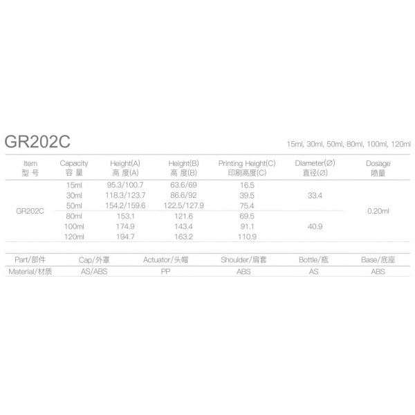 Capacity : 15ML / 30ML / 50ML / 80ML / 100ML / 120ML